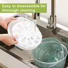 The BN-LINK Salad Spinner is an indispensable kitchen device with multiple uses. Not only is it an easy-to-use lettuce spinner, it will be one of your favorite large salad bowls and mixing bowls. For meal prep, you can both wash and dry salad greens, other vegetables, and fruits in seconds. The bowl features a soft, non-slip base, so it won't slide off your countertop while you're spinning. Key Feature: 【Durable Bowl and Non-skid Base】Transparent bowl is made of PP (polypropylene), which is durable material. Along with big non-skid base, no more worries about cracking or breaking of bowl after falling to the ground. Aiming at longer service life, hand-wash only, dishwasher not suggested. 【The Faster, The Dryer】Spinner driven by rotary handle spins faster than the one by pump, puller or electric. You can rotate the handle again at anytime during the spinning instead of waiting it stops. Higher spinning speed with better drying results. 【Two Lids available】Rotary lid with durable push-pull style buckle to secure the lid on bowl during spinning. Easy to disassemble for thoroughly cleaning; Free Silicone lid good for refrigerator salad storage and picnic, also minimize storage space in cupboard. 【Built-In Drainage System】No need to open the lid to add or pour out water; Protective water inlet avoid finger getting injured while holding the bowl during spinning. 【Multi-use】Both the bowl and colander basket are made of food-grade material and BPA free, safe to serve food directly. This spinner is not just for vegetables or fruits, also applicable to removing water from pasta or removing oil from fried food. Specifications: 1.Color: Blue 2.Size: 9.5*9.5*5.6 inch 3.Weight: 1.87 lb 4.Material: PP