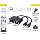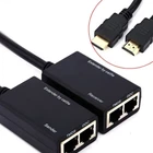 30M 98ft HDMI Extender Balun Using Cat5e or CAT6 Cable 1080p sender and receiver Specifications: Support system Windows 7/8/10 Supports maximum resolution: 1080p Supports LPCM, DTS Digital, DTS-HD Master Audio, and Dolby TrueHD audio Supports HDCP pass-through 165 MHz/1.65 Gbps bandwidth Features: 1. Use this simple and effective HDMI extender to send High Speed (1080p) HDMI signals up to 30 meters over dual Cat5e/6 cable! 2. Most extenders are small boxes, which must be mounted and which require additional cables to use. While they can usually handle longer distances, if you don't need to take the signal more than 30 meters, this simple pair of extender adapters is the right solution. 3. Each adapter plugs into your HDMI ports, with the sender in the source device and the receiver at the display. Then just run a pair of Cat5e/Cat6 cables between the adapters and you're in business! You won't need to provide external power - it gets the power it needs from the HDMI source device. 4. The adapters support up to 1080p resolutions and digital audio. 5. Lightweight plastic construction, Gold-plated HDMI connectors Packaging includes: 1x HDMI sender 1x HDMI receiver