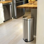 Our round 8-gallon trash cans are an excellent addition to any home or office. Featuring a profile hinge that allows it to sit close to a wall or cabinet, it's finished in brushed stainless, a fingerprint resistant surface. As good as it looks, it's just as functional the step-on mechanism allows for a smooth opening and the removable plastic liner makes bag changes a cinch. For a limited time, get a matching, smaller 1. 3-gallon step-pedal trash bin FREE with your purchase of this style. STYLISH & PRACTICAL DESIGN: Trash Cans clean-lined designs blend beautifully into your existing decor; Dispose of trash hands-free with our convenient step pedal; built-in damper lowers the lid quietly, and closes it tightly to keep odors inside DURABLE AND EASY-CLEAN: We believe in form following function; Made from high-quality steel, our trash cans feature a durable, lightweight inner plastic bucket; Family-friendly, brushed stainless steel is smudge-resistant and fingerprint proof SATISFACTION GUARANTEED: Every design is created with uncompromising attention to detail, using only the highest quality components; Based in Soho, New York, designer Jonathan and his talented team create affordable high-end home decor Can hold 30 liters or 7.9 gallons of trash Rustproof stainless steel construction
