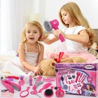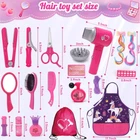 Girls Hair Salon Toys - Beauty Hair Dresser Salon Kit includes hairdryer with 2 switches, 1 mirror, 4 curlers, 2 combs, 2 hair clips, scissors, mirror, unicorn barber apron, and a storage withdraw bag. With rich accessories and realistic functions of this salon playset fill your child's imagination and creativity and keep them enthralled for hours. Realistic Hair Stylist Set - The blow dryer toy can blow light air like a real dryer. 2 x AA batteries required (not included). The pretend scissors can be opened and closed. Cute unicorn apron includes 4 pockets to insert the hair stylist tools. Fun Educational Salon Toys - Our educational play vanity kit engages kids in role-playing fun, encourages creativity, improves fine motor skills and teaches them the essentials of styling hair. This adorable educational toys is suitable for your girl to invite friends to play the game together. High-Quality ABS Material - Salon Toy Kit made of ABS plastic, high-quality fabrics, non-toxic and BPA-free, it's safe for your princess to play beauty salon toys with her friends. Perfect Christmas Gift For Girls - Everything fits well in the withdraw bag for easy storage. A great choice for girl birthday gifts, Christmas gifts, Easter gift, Thanksgiving gift, or presents for any other occasion. Hours of Entertainment! It's recommended for ages 3 and up.