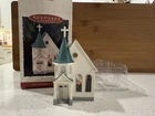 This Hallmark Keepsake Ornament is a beautiful addition to any Christmas tree. The ornament features a charming town church design with intricate details of nostalgic houses and shops. Made of durable plastic, this vintage ornament was manufactured in 1995 and is part of the collector series. The set includes one ornament and is perfect for anyone who loves collecting unique Christmas decorations. The ornament is in great shape and comes in an open box, ready to be displayed on your tree. Add this beautiful piece to your collection today! New in open box. From a smoke free home.