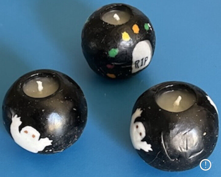 Halloween Candles Votive Round Black Ghosts Lot Of 3.