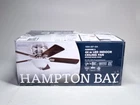 Hampton Bay Hawkins 44 in. LED Brushed Nickel Ceiling Fan with Light Item was purchased in a pallet liquidation sale of returned and overstock merchandise. Item is new in its original packaging. Package may shows signs of wear. Item has been opened for inspection and repackaged for secure shipping. The Hampton Bay Hawkins 44 in. LED Brushed Nickel Ceiling Fan features a twist-and-lock installation method that offers ease in installation and helps conceal hardware for a sleek, integrated look. The fan's brushed-nickel finish, 5-reversible java oak/ebony walnut blades and frosted-glass light kit provide a transitional style that complements a wide variety of decor styles. The three-speed reversible control enables you to select the desired speed and direction of airflow. 5 reversible java oak/ebony walnut blades allow you to change your decor style without replacing the entire unit Brushed-nickel finish complements a variety of decor styles Bowl style light kit with frosted white glass Uses (2) 9-Watt LED medium base bulbs, included Twist-and-lock installation method makes it easier to install and conceal hardware 153 mm x 12 mm motor offers superior air movement Has a height of 12.8 in. Small room: room sizes up to 10 ft. x 10 ft. Indoor use only