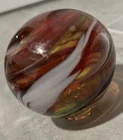 This beautiful glass ball was meticulously handcrafted in Oregon, showcasing a stunning swirl pattern in multicolored hues. The ball is a unique and eye-catching piece of art glass, perfect for adding a touch of elegance to any space. Its mid-century modern style and decorative features make it a perfect paperweight or display item. The ball is made of high-quality glass and is an original, licensed reproduction from the 21st century. Its production style is hand-blown glass, highlighting the craftsmanship and skill of the artist. This item is a must-have for any collector or lover of decorative art. Around 6 in diameter and around 6 in tall. Calculation may vary.