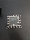 Vintage 1976 Hand Crafted Glass Picture Frame with a square shape, purple stained glass, and a size of 3x3 inches. The frame features fused leaded glass in a 1970s style, with a glossy finish. It is free-standing and can hold a single photo. The brand is Handcrafted and the frame is original from the 1970s.