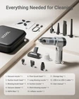 Next-Level Suction: Suck up dirt and debris with 16000Pa of intense suction powered by a 90,000rpm brushless motor. This cordless vacuum cleaner features three adjustable levels and an advanced turbine design, making car and home cleaning quick, easy, and thorough. Ultimate Cleaning Kit: With 8 attachments, this hand vacuum cordless handles everything from pet hair on sofas to tight car crevices. Perfect for vacuuming, inflating, deflating, and blowing dust off furniture, electronics, and more. Long-Lasting Battery: Enjoy up to 38 minutes of runtime on low suction and 18 minutes on high suction. USB-C charging ensures convenient recharging, so your hand held vacuum cordless rechargeable is always ready for uninterrupted, flexible cleaning sessions, whether tackling large areas or quick cleanups. Flexible Cleaning Comfort: Designed for ease, this cordless handheld vacuum cleaner offers freedom from cables, with an ergonomic design for comfortable handling, reduced fatigue, and easy cleaning of hard-to-reach spots. Compact and Lightweight: This small vacuum cleaner, weighing just 1 lb and about the size of a travel mug, is perfect for car use, travel, and easy storage. Its compact design makes cleaning effortless and allows even kids to join in. Peak Clean Efficiency: This mini vacuum cleaner features a high-speed motor, fully enclosed turbine blade, 110ml dust cup, washable HEPA filter, and a sealed debris barrier to enhance filtration, capturing 99.7% of dust and debris while preventing leakage, ensuring effective operation and easy maintenance. A spare HEPA filter is included to replace the original after extended use, maintaining optimal filtration performance. (Note: The washable HEPA filter should be dried completely before reusing for best results.)