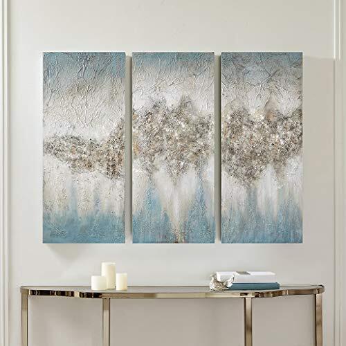 This stunning hand-painted canvas set instantly elevates any space with its gorgeous blue hues and subtle glitter accents. The three-panel design adds modern elegance to living rooms, bedrooms, or even bathrooms. I was impressed by the rich colors and quality craftsmanship—each brushstroke adds beautiful texture. The ready-to-hang frames made setup effortless, and the pieces arrived quickly in perfect condition. The silver detailing catches the light beautifully, creating a luxurious focal point. Absolutely love how it transforms my wall into a gallery-worthy display!