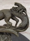 SIGNED HAND MADE LOST WAX FOX BRONZE SCULPTURE FIGURINE CABIN DECOR WILDLIFE NR SIGNED HAND MADE LOST WAX FOX BRONZE SCULPTURE FIGURINE CABIN DECOR WILDLIFE NR Condition : This sculpture is in perfect condition. Bronze Dimensions with Marble Base: Height 7.5" X Width 9.5" Marble Dimensions: Diameter 8.5" Height without base:9.5" Weight:9 LBS Inventory:64AL3705746 This captivating bronze sculpture features a fox, beautifully crafted with meticulous attention to detail and realism. The mystical hunter is depicted in a stand of trees, offering a touch of the wild and a sense of drama to any space. Whether placed near an entryway, as part of a home gallery, or in proximity to a fireplace, this artwork brings a unique charm that is both irresistible and enchanting. Crafted using the lost-wax method, a technique known for its precision and ability to capture intricate details, the sculpture showcases the artist's dedication to portraying the essence of this cunning creature. The antique brown patina finish adds a timeless quality, enhancing the overall aesthetic and giving the sculpture a sense of antiquity. This fox sculpture, reminiscent of rare collectibles, is more than just a decorative piece—it's a statement of artistry and a celebration of the natural world. Signed by the artist S. Beatuce, this handcrafted bronze masterpiece invites admiration for its craftsmanship and the unique character it brings to any environment. Signed S.Beatuce Fox Wild Animal Bronze Statue Figure Sculpture Figurine Art Video will open in a new window Using the eBay App? Paste link into a browser window: [isdntekvideo] Shipping Terms : Most of our items are shipped via USPS (United States Postal Service) mail or UPS. Most orders are shipped within 24-48 hours of purchase. Please be aware that not all items are available for USPS shipping due to size and weight. We do ship to Hawaii, Alaska, Canada, Puerto Rico, APO/AE, and U.S. Virgin Islands, however, an additional charge may be required. Please contact us before making any purchases in these areas. For Non-USA customers, you may be responsible for all duty, tax, brokerage fees that may be due upon delivery (shipping costs cover freight charges only). We also ship internationally. Please refer to the "Shipping and Handling" chart for the rates for each area. Payment : We accept just about any form of payment. PayPal, Master Card, Visa or American Express credit cards. Money orders, cashiers checks, and even personal or business checks. For governmental institutions, we will also accept a purchase order. Please understand that for personal or business checks we have to wait for the check to clear (usually 7 days) before shipping. Condition : New Detailed Hand Crafted Hot Cast Bronze Satisfaction Guaranteed. This is Stock Photo, Slight Color Variation!! Listing and template services provided by inkFrog