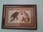 Note: Signed but can't read signature. This product is a small, hand-drawn and watercolor-painted wall art featuring a dog and cat. The artwork measures 5x7 inches and comes framed. The artist is unknown, but the style is Art Deco and Figurative Art. The piece is signed and matted, making it a unique and charming addition to any art collection. The detailed and expressive depiction of the animals makes this art a delightful focal point for any room.