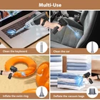 【15000 PA Cordless Vacuum Cleaner】- The Handheld Car Vacuum Cleaner Cordless has 15000Pa suction power.The 80W powerful motor provides 3 adjustable suction and blowing power, you can adjust the mini car vacuum cleaner gears according to your cleaning needs. 1-Gear 11KPA, which is suitable for daily cleaning work. 2-Gear 13KPA, can meet the requirements of efficient cleaning. 3-Gear 15KPA. Operation Design, Move freely to clean your car,office,kitchen or hard-to-reach corners. 【Multifunctional Mini Vacuum Cleaner】- Handheld Vacuum cleaner used with 7 accessories can be used to get 4 modes of suction, blowing, inflation and vacuum compression to meet your different use scenarios and the powerful suction makes it effortlessly suck dust and debris from your car seats, carpets, and crevices. at the other end is a blower that easily blows away dust from keyboards, lenses, and pianos; It can also be used to pump up balloons, swimming rings, or vacuum seals. 【7 Multi-Purpose Accessories】- Portable car vacuum cleaner has Multi accessories for all of your needs. Long nozzle, brush and long nozzle make it easy to clean all kinds of dust and garbage. Hair dryer nozzle provides powerful airflow to quickly dry damp clothes or hair. Suction nozzles can suction and inflate organizers to make organizing easier. Pet care brush can suck away hair while brushing your pet. Inflatable nozzles can inflate mattress, swimming rings and so on. 【Ultra lightweight & Rechargeable Battery】- Car vacuum portable cordless cleaner Weighs only 0.3 KG, making it very compact and lightweight, with a built-in 4000mAh battery, quick charge in 2-3 hours(Red light for being charged, green light for fully charged), and can run for 30 minutes (Running time may vary depending on cleaning load). Comes with a Type-C charging cable, that can be used to charge the vacuum in a USB slot anywhere in the car or at home. 【Upgraded Design】- This handheld vacuum cordless is designed with a digital display that shows you the number of gears currently in use and the amount of suction power in real time, helping you to better regulate the intensity of your cleaning.This vacuum cleaner easily fits into an organizer or storage cabinet without taking up too much space. With the cordless and an LED light design, you can clean high or inaccessible areas without the risk of electrocution or slipping . 【Dual Filtration System】- Car vacuum portable cordless cleaner comes with an upgraded dual filtration system that prevents suction loss and clogging. It has a reusable filters,and the washable HEPA filter can effectively filter tiny particles and dust to prevent damage to the motor.