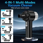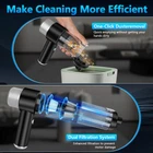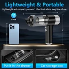 15000PA Powerful Suction: The hand held vacuum cleaner is equipped with a 86,000RPM high-efficiency motor and provides up to 15000PA of suction power, which can easily solve the many cleaning challenges you face. Small vacuum cleaners rapid heat dissipation function makes the motor more durable and longer lasting. Whether it's the sofa or carpet in your home, or the interior of your car, you can easily clean it anytime and anywhere. Portable Design: This handheld vacuum cordless cleaner is only 0.88lb, it very lightweight, easy to carry and store. The one- click dusting design makes cleaning easier. Portable vacuum for car is designed with LED lights, you can easily clean in dark places, friendly design brings great convenience to your cleaning work. Dual Filtration System: Mini vacuum cleaner comes with an upgraded dual filtration system that prevents suction loss and clogging. Two reusable steel filters can effectively filter large particles of debris, the washable HEPA filter can effectively filter tiny particles and dust. The powerful handheld vacuum cleaner makes the dust in all places have nowhere to hide and makes all of your items look new. Type-C Fast Charging: Our handheld vacuum cordless has a built-in 4000mAh battery. It can be easily charged using a adapter, mobile power, car charger, laptop and easily charged using a variety of USB port devices. Mini car vacuum cleaner with a charging time of only 2.5 hours, red light for charging, green light for fully charged, full charge can run for 25 minutes. 4-IN-1 Car Vacuum Cleaner: This portable cordless vacuum cleaner is equipped with 7 accessories, which can meet suction, blowing, inflation, exhaust and other use scenarios. Floor brush and nozzle brush can easily suck up all kinds of debris. Blowing nozzle can be used to blow away dust from keyboards, corners and narrow crevices. the universal nozzles can quickly inflate or expel air from objects such as swimming rings, mattresses, etc.