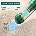 17000 Pa Powerful Suction: The car vacuums with best suction cordless is equipped with a powerful high-speed brushless motor (consume less power, run smoother, make less noise, and last longer than brushed motors), which generates a suction power of up to 17kPa, effectively removing dirt, dust, and debris from different surfaces; 17000pa strong suction power portable vacuum cordless allows you to clean your trash quickly without having to clean the same place several times over and over again, which saves half of the time compared to the low pa cordless car vacuum Long-lasting Battery with Quick Charge: This hand vacuum cordless rechargeable has a built-in 7500mAh rechargeable lithium-Ion battery, Ultra-high capacity can provide max 35 min of continuous cordless cleaning power after 4 hours full charging. The car vacuum cleaner is easy to recharge the battery by using a standard Type-C cable (included). Provide temperature/short circuit/overvoltage/overcurrent/overcharge protection to ensure the safety of the device. NOTE: Please use a charger with an output voltage of 5V/2A or more to charge the device Safety Aluminum Material & Dual-Filtration: The main body of this mini vacuum cleaner is made of premium aluminum alloy, which is durable and lightweight. Handheld vacuum cordless feature an enhanced HEPA filter that helps pick up and lock in 99.5 per cent of the microscopic dust particles that are invisible to the naked eye, and a high-quality stainless steel filter wrap that blocks most particles, further extending the life of the HEPA filter while ensuring optimal suction Cordless & Lightweight: This cord-free design mini car vacuum weighs only 1.08lbs, lightweight, making the portable vacuum cleaner easy to carry around and use anywhere. Equipped with a wireless design and one-button pour, this handheld vacuum cleaner boasts a built-in high-efficiency motor for effortless cleaning of hard-to-reach areas at home, office, or in your car. Also, The hand held vacuum cordless's 210 ml dust cup that can be easily emptied and cleaned, and the stainless steel and HEPA filters can be washed and reused Will Always Be With You: The cordless high powered car vacuum comes with an exquisite storage box, which makes it perfect best gift for family or friends! is committed to providing customers with the highest quality shopping experience, if you have any problems, please contact us, we will help you solve your problems within 24 hours and lifelong friendly customer service