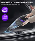 ➤[18Kpa Hand Held Car Vacuum]: handheld vacuum cordless is equipped with a 160W digital motor, which can reach a super suction power of 18Kpa, and 2 speeds to meet all your cleaning needs. Really a great vacuum cleaner for home, car, office, camping and trip. ➤[ULTRA LIGHTWEIGHT & Cordless & LED]: Only 850g, allowing you to easily clean up sand, dust, debris, cat litter, dog food, pet hair, dust, crumbs and other annoying residues from every corner. No tangled wires to worry about. Unlike other vacuums on the market, is also equipped with 2 LED lights so as to deal with dark garbage more effectively. ➤[3H Fast Charging&30Min Working]: This car vacuum cleaner has a double protection plate, equipped with a fast charging chip, and supports 3 hours fast charging. And one charge is able to use 30 minutes, you can completely clean the interior of your car without frequent charging. ➤[Multi-Stages HEPA Filtration System]: With HEPA filter, this car vacuum cleaner can achieve 99.9% filtration and inhale microscopic dust as low as 3 microns. The cyclone filtration system is built-in with a tight rubber ring and sealed design that won't leak any dust. The small vacuum cleaner vacuums trash and releases fresh air. ➤[Cleaning Crumbs Near Cat Litter Tray]: This is a must-have cleaning tool for homes with pets. You can use this hand held vacuum with LED lights to clean the crumbs near the cat litter tray. Whether it's a rubber mat with many lines and crevices, or crumbs in a small carpet, use the handheld vacuum cleaner to solve your troubles in 1 minute. ➤[2024 Latest Hand Vacuum Cordless Rechargeable for Crevices]: There are a lot of crevices in our life that are difficult to clean, such as windows, air conditioners, keyboards, blinds, and this powerful mini vacuum cleaner enables quick cleaning without removing them for cleaning.