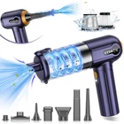 🟣【16000PA Powerful Suction】120W powerful motor provides strong suction and blowing options of 1 Gear-12KPA and 2 Gear-16KPA, you can adjust the vacuum cleaner's gear according to your cleaning needs. Whether cleaning up tiny dust or larger debris particles, it is easy to deal with. Car vacuum cleaner fast heat dissipation function keeps the motor stable at a high speed of 108,000RPM, preventing overheating and enhancing safety 🟣【7 Multi-Purpose Accessories】Multi accessories for all of your needs. Long suction nozzle, brush and long nozzle make it easy to clean all kinds of dust and garbage. Hair dryer nozzle provides powerful wind to quickly dry damp clothes or hair. Pet care brush can suck away hair while brushing your pet. Large universal nozzle can vacuum storage bags or inflate mattresses and rafts. Small universal nozzle can inflate and deflate yoga balls, swim rings and more 🟣【Dual Filtration System】Handheld vacuum cordless cleaner comes with an upgraded dual filtration system that prevents suction loss and clogging. With reusable filters, the steel filter can effectively filter large particles of debris, and the washable HEPA filter can filter tiny particles and dust to prevent damage to the motor. Unique -click dusting and U-locking design makes it easy to empty the dust cup while preventing accidental touching of the button 🟣【Digital Display & Fast Charging】Handheld car vacuum cleaner is equipped with a digital display that clearly shows the current number of gears used and the suction power level, which can help you better control the cleaning progress. 4000mAh reusable battery can be fully charged in just 2.5 hours. The working times of Gear-1 is 30min and Gear-2 is 25min under full charge. Note: Please don't use high power adapter, 5V/2A adapter can be used for charging 🟣【Portable & LED Light】Car vacuum portable cordless cleaner has a cordless design, so you don't have to worry about cords when cleaning. Our mini vacuum cleaner is made of lightweight material, only 0.66LB, making it easier to hold. Compact size can be easily stored in a drawer or locker to take up no space. Equipped with an LED light to illuminate dark corners, allowing you to easily clean without light restrictions