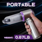 【3 Gear suction power】This handheld vacuum cleaner features an advanced high-speed motor, with a maximum suction power of 18000PA. Adjustable 3-gear speeds: 7000pa, 12000pa and 18000pa suction power are perfect for home and car cleaning. Long press for 3 seconds to start the device. Short press once to switch to the next level. 【Full set of accessories】The cordless handheld car vacuum cleaner comes with various brushes and nozzles, making it perfect for cleaning pet hair, crumbs, dust, as well as dirt hidden in every corner of car accessories and seats. 【Rechargeable】Our cordless handheld car vacuum cleaner comes with a rechargeable battery, which can be fully charged in just 3-4 hours. Depending on the speed you choose, the usage time is approximately 12 to 30 minutes. 【Portable】handheld vacuum cleaner is designed for easy portability and convenience. With a dust bag included, you can neatly store all accessories in one place for quick access. 【2-in-1 Car Vacuum】portable handheld vacuum cleaner features both blow and suction functions. You can also use it as a powerful blower, blowing away heavy dust from computer keyboards and other electronic devices. Additionally, you can use it to inflate swimming rings or outdoor air mattresses, making it very convenient for outdoor activities.