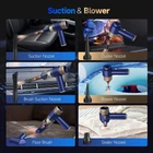 🚀【7-in-1 Multifunctional Cordless Car Vacuum Cleaner】: The handheld vacuum cordless with 7 accessories supports multiple modes, such as vacuuming, blower, inflation, pump. Hand vacuum can meet different need for daily cleaning tasks and even clean hard-to-reach corners, such as blowing or vacuuming dust or debris from seats, keyboards, camera lens, desk, computer host and cabinet corners, or inflating or expeling air from swimming rings and mattresses, or Blow air for BBQ fire, etc 👍【16000Pa Hurricane Suction Mini Vacuum】: The car vacuum portable cordless is equipped with a new generation Japanese motor for high cleaning efficiency. 16000Pa powerful suction of the small vacuum cleaner is strong enough to remove dust, pet hair, food scraps, confetti and other common stains. The special internal structure and circuit protection design ensures the motor dissipates heat quickly and more durable and long-lasting. 📲【Dual Filters & One-touch to Empty】: The portable vacuum cordless has an upgraded dual filtration system, the Hepa and Metal double filters can effectively filter out all kinds of large and tiny particles to prevent damage to the motor. One-touch dust removal design makes this mini vacuum cleaner cordless very easy and convenient to empty the dust cups. No more worrying about getting your hands dirty every time! 💡【Portable & LED Light】: This portable car vacuum cleaner features a stylish design and weighs only 410g(0.8lbs), allowing for easy operation, portability, and storage. The cordless, one-button start design ensures effortless and quick cleaning crevices of home, office, car. Additionally, hand held vacuum has LED lights, enabling you to clean in dark coner or at night. The user-friendly design offers great convenience for your cleaning needs. 🔋【Type-C Fast Charging】 : this vacuum cleaner for car uses built-in 4000mAh battery and you can use USB port of computer , mobile power, car charger or 5V/2A adapter to fully charge the mini car vacuum cleaner within 2.5 hours. 📢【Notice】: Please fully charge the vacuum for car before use. When mini vacuum cleaner cordless is on low power, the suction may decrease. The filters is a washable and replaceable accessory which need to be cleaned in time, otherwise it will affect the suction of the machine. 🎁【A Perfect Gift Choice】: this portable vacuum for car is a great gift option for your family and friends. and mini vacuum cleaner cordless is great for families with pets to help them clean up their pet hair. It is suitable for various nooks and crannies. It's sleek design and powerful functionality make it.