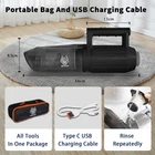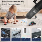 【6-IN-1 VACUUM】 The cordless vacuum offers vacuuming, blowing, inflating, deflating, wet/dry cleaning. It tackles pet hair, sofa crevices, computer dust, spills, campfire ignition, inflating beds/kayaks, vacuum bags, and even milk splashes in your vehicle or home. 【HEPA FILTER & CYCLONE DUST SEPARATOR】 Equipped with two washable HEPA filters and a separate cyclone dust cover, our car vacuum captures large particles, extending the unit's lifespan and preserving strong suction. The 620mL translucent dustbin lets you monitor debris levels easily. 【POWERFUL PERFORMANCE & LONG RUNTIME】 Boasting a 120W motor operating at 11.1V, Its 6000mAh lithium battery provides up to 45 minutes of continuous use. It’s easy to recharge via USB cable and includes temperature, voltage, current, and short-circuit protections. 【CORDLESS & LIGHTWEIGHT】 Wireless and lightweight, this handheld car vacuum offers total mobility and easy storage. The built-in LED light lit dark areas, making it perfect for removing dust, debris, pet hair, and tough messes in narrow corners. 【COMPLETE GIFT SET】 The wet/dry vacuum arrives in a premium hard case, which includes the vacuum, USB-C cable, 7 versatile attachments & accessories, an extra HEPA filter, cleaning brush, and a new carry bag neatly arranged and ready for any cleaning task.