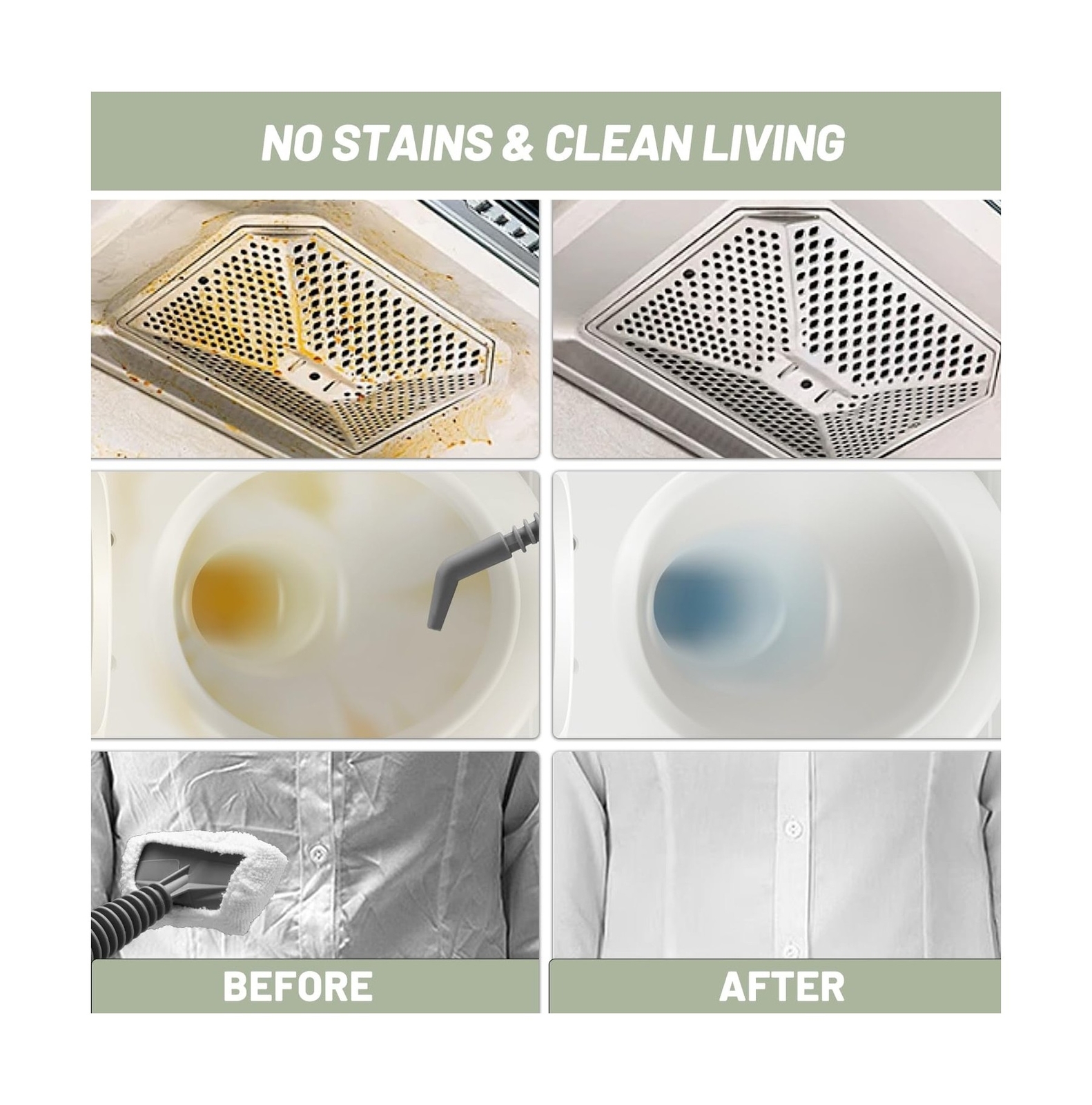 Handheld Steam Cleaner, Pressurized Multi-Surface Steam Shot with 13 Accessories, Safety Lock, Steamer for Cleaning Floor, Upholstery, Grout, Windows, Couch and Car, Green - Buy Now with Fast Shipping! Handheld Steam Cleaner, Pressurized Multi-Surface Steam Shot with 13 Accessories, Safety Lock, Steamer for Cleaning Floor, Upholstery, Grout, Windows, Couch and Car, Green Product Details Brand: Outspurge Special Feature: Child Lock, Heat Light Indicator, Steam Ready Indicator, Steam Control Surface Recommendation: Ceiling Model Name: steam cleaner Included Components: Funnel, Extension Tube, Steam Connector, Measuring Cup, Cleaning Pad Brand: Outspurge Special Feature: Child Lock, Heat Light Indicator, Steam Ready Indicator, Steam Control Surface Recommendation: Ceiling Model Name: steam cleaner Included Components: Funnel, Extension Tube, Steam Connector, Measuring Cup, Cleaning Pad Wattage: 1 Tank Volume: 350 Milliliters Item Display Dimensions: 10 x 5.5 x 9.25 inches Form Factor: Handheld Heat Time: 3 minutes Color: Green Power Source: ac Voltage: 110 Capacity: 3.5E+2 Cubic Centimeters Style: Modern Maximum Temperature: 230 Degrees Fahrenheit Product Dimensions: 9.84"D x 5.51"W x 9.25"H UPC: 798977750942 Item Weight: 4.55 pounds Manufacturer: Outspurge Item model number: EM-315 Date First Available: March 27, 2024 Key Features ✅ Large Capacity & Fast-Heating: Equipped with a large water storage capacity of 350ml, the steam cleaner can fill up to 250ml of water. With an innovative closed heating system, the new model upgrades the boiler liner, and the cleaner can quickly reach 105C (221F). 3-5minutes for fast-heating, each time it can continuously spray steam for 8-10 minutes, no need to add water in the middle ✅ Chemical-Free & Safe: This steam shot is 100% chemical-free with no harmful fumes or residue , just need to inject water, use high-temperature & high-pressure steamer for cleaning. The handheld steam cleaner is equipped with a safety lock, which prevents accidental contact by children ✅ Multi-Scene Use:13 in 1 multifunction handheld steamer is equipped with multiple accessories to meet your different daily needs, which can be used in different scenarios, for example kitchen, bedroom, living room, car leather goods, bathroom, clothing and so on. Whether it is stubborn grease or dust in the crevices, it can be swept away ✅ Humanized Design: The deep steam cleaner is paired with an extra-long 9.85ft power cord, making it easy to clean every corner of your home without having to change outlets frequently ✅ High-Quality Materials: The shell of our cleaner is made of high temperature resistant ABS material, our cleaner has better heat insulation, which can prevent scalding during the heating process,need to wait for the indicator light on the cleaner to go out before you can use the cleaner so that the steam cleaner is at the optimal temperature and pressure. ✅ This product is not manufactured by, affiliated with, or endorsed by BlSSELL or the BiSSELL SteamShot steam cleaner. Product Description