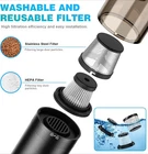 【Powerful Suction Handheld Vacuum Cleaner】 Our car handheld vacuum utilizes a high-speed DC motor and innovative aluminum alloy fan blades, delivering a power output of up to 85W and exceptional suction capability. Two modes: ECO mode - 10000PA, Max mode - 14000PA. The vacuum cleaners for home is equipped with a washable and reusable 1 * metal filter and 2 * HEPA filters, capable of filtering 99.99% of dust, making it easy to clean dust, debris, pet hair, and more. 【Low Noise Hand Held Vacuum and Air Duster 2 in 1】This pet hair vacuum is very quiet, with a noise level of <75dB, ensuring a low-noise cleaning experience that won't disturb family members' rest or startle pets. It combines both suction and blowing functions, allowing for quick and efficient removal of surface dust or debris, as well as blowing away dust or sand from crevices and corners. It can be used for cleaning anywhere, enabling comprehensive and efficient cleaning. 【Ultra-Lightweight Mini Handheld Vacuum Cordless】The portable Mini Vacuum adopts ergonomic design, with a lightweight construction of only 1 pound, allowing for quick cleaning with single-hand operation. Its cordless design enables easy cleaning of every corner without the hassle of tangled wires, ensuring more efficient cleaning. With its compact size, it is easy to carry and store, saving space. With a large capacity of 0.15L, it fully meets your daily trash storage needs. 【LED Display & Hand Vacuum Cordless Rechargeable】The wireless handheld vacuum cleaner has an LED display screen. Press and hold for 3 seconds to power it on or off. When turned on, the LED display screen shows the current battery level. It also incorporates a lighting design, allowing dust to have nowhere to hide. This car vacuum quick charging takes approximately 3.5-4 hours. With a full charge, the ECO mode provides a runtime of 30 minutes, while the MAX mode offers a runtime of 20 minutes. 【One-Click to Dust & Easy Cleaning】The vacuum features a one-click emptying mechanism, allowing you to effortlessly and quickly dispose of the dust with just a button press. The transparent design provides a clear view of the dust collection process, reminding you to empty it in a timely manner. The nozzle of the mini cordless vacuum cleaner features a built-in flip cover, ensuring that dust won't easily spill out when it's not in operation.
