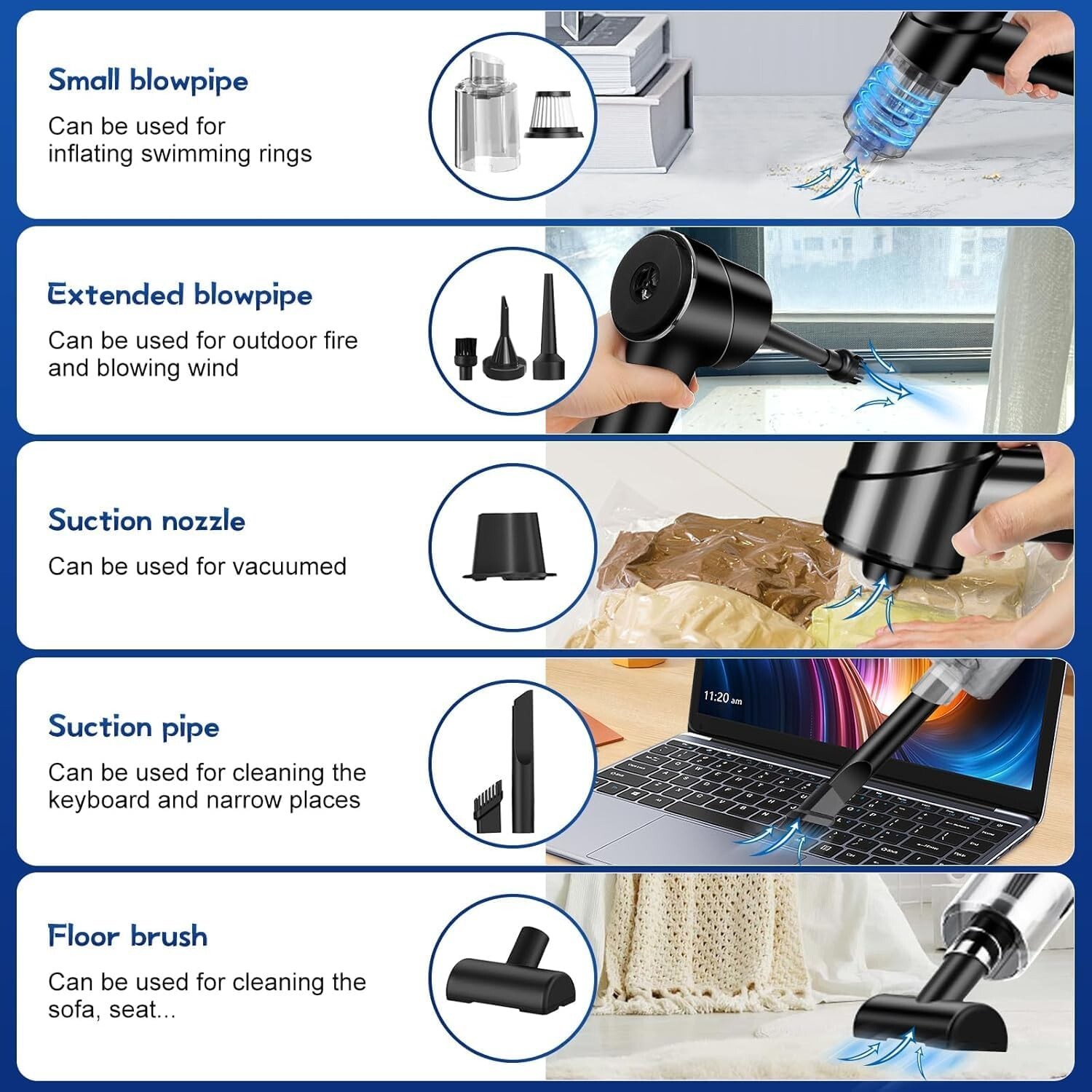 Handheld Vacuum Cordless, 12000PA Rechargeable Car Vacuum Cleaner 2 in 1