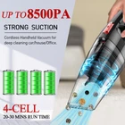 【UP TO 8500 PA Suction】Handheld cordless vacuum has powerful suction up to 8500PA. It can provide two modes according to different needs, 6500pa and 8500pa. It has a very good cleaning effect on dust, paper scraps, particles and pet hair. Cord-free design and lightweight and small comfortable size and easily carried and suitable for various occasions such as home, office, car, etc. 【Wet Dry Handheld Vacuum】Handheld vacuum cleaner has Crevice Nozzle*1, Hair Brush*1, Water Absorption Nozzle*1, Filter*2, Adapter*1. Cordless handheld vacuum with wall mount. The material of the filter is non-woven fabric, which can be cleaned dust with clean water. The filter can block dust particles from entering the motor to the greatest extent, effectively protect the motor and alleviate the drop in suction and held vacuum 【Cordless Design / LED Light】 This car vacuum is portable to use free your movement for cleaning corners with no cable. The handheld mini vacuum can operate at low frequencies below 73dB, which sounds less annoying and gives you a quiet cleaning experience. The handheld vacuum cleaner has a large-capacity (500ml) dustbowl to meet the need of cleaning easily. Handheld Car vacuum cordless has bright LED lights, no more worries about being cleaning in a dimly lit corner or at night. 【Quick Charge / Battery】Hand held vacuuming cordless with battery and quick charge tech and outstanding performance. Handheld vacuums have temperature protection,ensure equipment safety throughout the charging process. Car vacuum cleaner could work constantly for 20-30 minutes after fully charged for 4-5 hours. The handheld vacuum with wall mount. This handheld vacuum cordless voltage of the charger is 14.8V, it be used with 110v-220v sockets. 【 After-sales Service 】If you encounter any problems about Portable Vacuum, please contact service team, we will provide technical support and after-sales service at any time to try the best to help every customer.