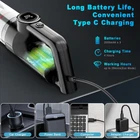 15000Pa SUCTION AND BRUSHLESS MOTOR: Built with the upgraded brushless motor, our hand held vacuum cleaner has a suction up to 15000Pa(Max mode), very powerful!!! It also has an Eco mode of 10000Pa for simple cleaning tasks. It can help you to do all-around cleaning with a powerful motor and long battery life. The portable vacuum cleaner cleans dust, crumbs, and pet hair from carpets, living rooms, kitchens, and offices with outstanding performance. LONG BATTERY LIFE AND FAST CHARGING: With multiple 2000mAh*3 batteries and quick charge tech, the battery life is extended by about 26 minutes when fully charged for 4 hours. The LED light on your cordless car vacuum works well to illuminate those dark, hard-to-see places. Only need to press the switch and it will start working, don't have to hold it down with your hands, which is very convenient. FULL PROFESSIONAL ACCESSORIES: The brush tool can clean hair and dust that is on the surface, and the crevice nozzle tool can be used to clean sofas, crevices, and corners. An extension tube can dust baseboards, blinds, and those pesky cobwebs in the ceiling corners. Any inch of your house/car can be covered with the full accessories. Perfect for those who have pets also. It comes with 2 reusable durable HEPA filters to meet your usage needs. The included adapter can better protect charging. EASY TO CLEAN: With just one click dismantling, you can easily dump garbage and clean the Vacuum Cleaner. Only weighs 1.4lb, portable and easy to hold. The enhanced HEPA filter can be washed and reused, ensuring efficient suction power while keeping dust and dirt outside to prevent blockage. Please dry it before putting it back into the vacuum. DURABLE VACUUM & CUSTOMER SUPPORT: With the upgraded brushless motor, our hand vacuum has a longer life. You can put it in your home, car, or even office. If you have any questions or problems about our rechargeable hand held vacuum cordless, don't hesitate to get in touch with us. customer team provides 24-hour technical support, quality guarantee, and money-back services.