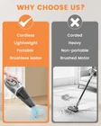 BRUSHLESS MOTOR & 15000PA POWERFUL SUCTION: The SM05BS handheld vacuum cordless features the latest brushless motor, delivering a maximum suction power of 15kPa to effortlessly pick up stubborn dust, debris, peels, and pet hair from your home, car, or office. With dual suction modes—ECO-10KPa and MAX-15KPa—this car vacuum offers a versatile cleaning experience. Compared to other models, the SM05BS car vacuum portable cordless provides stronger suction, a longer lifespan, and quieter operation, making it an excellent choice for all your cleaning needs. LONG RUNTIME & EASY TO CLEAN: This pet hair hand held vacuum cordless is portable and cordless, featuring a built-in 2500mAh*3 rechargeable battery that provides up to 30 minutes of runtime in ECO mode and fully charges in just 3-4 hours. The large 850ml dust cup of this hand vacuum cordless rechargeable allows for more waste collection at once, reducing the need for frequent emptying. Cleaning is simple—just tap the switch to detach the dust cup from the handheld vacuum, making trash disposal quick and easy. This hand vacuum cleaner is designed for efficient and hassle-free cleaning! ANTI-CLOG FEATURE AND METAL FILTER: This vacuum for car features an intelligent protection system that reduces power or stops operation to safeguard the motor when the vacuum cleaner's filter becomes clogged. An indicator light on top will alert you to clean the dust cup and filter for continued use of the mini vacuum cleaner. The built-in washable metal filter captures 99.97% of fine dust particles, ensuring clean exhaust air and protecting your family's health with this efficient vacuum for car. 3 PRACTICAL ACCESSORIES & LED LIGHT: This portable hand vacuum includes a car detailing kit with a crevice tool, floor brush, and dust brush. Its cordless and ergonomic design makes this portable vacuum easy to hold while cleaning pet hair from your sofa or tackling hard-to-reach areas like nooks and crannies. Additionally, this mini vacuum cleaner features a built-in LED light, ensuring that no trash hides in the dark! SUPERIOR QUALITY & CUSTOMER SUPPORT: Crafted with superior quality and durable materials, the SM05BS hand held vacuum is built to last. Experience reliable performance and longevity from this portable vacuum cordless that will exceed your expectations. Additionally, we offer 24/7 online support for our mini vacuum customers. If you have any questions or issues regarding the portable vacuum for car, please contact our team, and we will provide you with a satisfactory solution!
