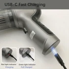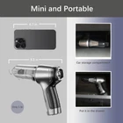 【3 in 1 Multifunction Car Vacuum】3 in 1 cordless hoover vacuum for car, this car vacuum cleaner comes with several nozzles that can be switched between three modes: vacuum mode, dust blowing mode, and vacuum sealing mode, which not only cleans large areas of dust, but also cleans dust in the crevices, and can be used to inflate a balloon, or vacuum seal. 【Portable Vacuum for Car】This hand held vacuum cordless weighs only 1 pound, hand vacuum is easy to hold, small and easy to use for small cleanups. The cordless car vacuum cleaner is also flexible to use and place in your car, regular drawers or tight spaces. We also include an organizer bag that holds the vacuum cleaner and all of its accessories for on-the-go convenience. 【Rechargeable Operation】Our cordless rechargeable hand vacuum is equipped with the latest 2x2000mAh high-capacity battery and fast charging technology. Type C charging device is designed so that the small vacuum cleaner can be recharged at any time. 【Car Vacuum Cleaner High Power】Brushless vacuum cleaner for car with cone seal technology, equipped with a brushless motor 15000PA power, air pressure doubled, suction, blowing, vacuuming function are powerful. 【High Quality Filters】Reusable HEPA filter can be washed and air-dried. Wireless handheld car vacuum cleaner strong suction comes with 2 different filters. The HEPA filter can be washed and reused, and the steel filter can be reused again with a simple wash for a longer lifespan. In addition to the filter that comes with the cordless hoover vacuum and blower for car itself, this kit also includes 2 replaceable filters. 【Widely Used】This handheld vacuum cleaner can meet a variety of use scenarios such as blowing, vacuuming and pumping, car vac can be used for vacuuming and cleaning in cars and sewing machines, as well as blowing keyboards, engine compartments, balloons, charcoal grills, and swimming rings, etc., and car vacuums with suction cordless can also vacuum-seal food bags and storage bags. Mini vacuum cordless has a built-in brush and nozzle to easily clean crumbs, dust or pet hair from crevices. 【Instructions for Use】 To start, you need to press and hold the button of cordless handheld vacuum cleaner for about 3 seconds. Then, pressing the mini car vacuum button again will switch to higher speed/higher power, and pressing the button of cordless hoover car vac and blower a third time will turn it off.