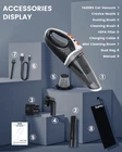 Strong Suction & Quiet Operation: This handheld vacuum features a powerful 15000Pa brushless motor with 2 adjustable modes (ECO-10KPa and MAX-15KPa) to effortlessly clean pet hair, debris, and crumbs from your car, home, or office. Despite its high power, it operates at a noise level below 65dB, ensuring a quiet and peaceful cleaning experience, while its compact size ensures convenient usage anytime and anywhere. Perfect for car detailing and home use, this car vacuum cleaner high power. LED Light & Professional Accessories: Rechargeable wireless design enables the handheld vacuum to operate without constrains of power cords, It can be used for cars but also perfect for home, office and RV travel. The vacuum cleaner features a built-in LED light that illuminates dark areas, making it easier to clean hard-to-reach corners. It comes with 3 professional accessories-an extension, a floor brush and a cleaning brush - to meet different cleaning needs. Long Life & Easy Trash Disposal: With its built-in 2500mAh Li-ion battery and a fast charging port, car vacuums with best suction cordless can work up to 27 minutes continuously. The portable vacuum cordless with USB-C charging cable has the latest fast charging technology, and fully charging only takes 3.8 hours. The 850ml dust cup allows you to handle more dirt in a single go. The washable and reusable HEPA filter ensures efficient suction power while preventing blockage. Upgraded Filtration & Clogging Function: Comes with an upgraded filtration system and a clogging function to protect the cordless vacuum. When the HEPA gets dirty, air will not go through it. The suction power may decrease or the car vacuum cleaner may stop working to prevent damage to the motor. You can rely on this feature to maintain optimal suction power and extend the lifespan of the hand held vacuum. Exceptional Customer Support: The small vacuum cleaner helps your family, friends and lover make mundane chores effortless and enjoy a more comfortable, clean and healthy life, bringing unique surprises to them at special days. We offer a professional after-sales team with 24-hour online response. If you have any questions or problems about the aspiradora para carro, don't hesitate to contact with us.