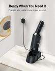 【Activation Settings】 For first time use, you must connect the power supply to power on, Have Smart battery protection program 【Delicate shape large suction】 handheld vacuum cleaner has two suction modes: Standard mode: 8000pa & Max mode: 15000pa. Cord-free design and lightweight and comfortable size and easily carried and suitable for various occasions such as home, office, car, etc. 【Stable Battery Life & Rapid Charging】 handheld vacuum cleaner is equipped with a large capacity battery and fast charging tech. It could work constantly for 25 minutes at the lower suction level and 13 minutes at the higher suction level after 4-5 hours full charging. 【Adapt To Cleaning Scenarios】 handheld vacuum has 2 interchangeable brush heads. The crevice nozzle can help you to clean the hard-to-reach places easily, such as sofa crevices and seat gaps. The brush tool is suitable for cleaning carpets, blankets, and keyboards. 【Easy Charging To Get Rid Of Restraint】 handheld vacuum is equipped with dual charging ports for faster and more convenient charging, this cordless vacuum can be charged on a docking station or the charging cable can be directly plugged into the device. 【Comfortable Ergonomic Grip】 handheld vacuum cleaner has ergonomically engineered to make vacuuming easy and comfortable no matter what surface you're cleaning, our offers a comfortable grip for an effortless surface clean 【Quick Solution To All Worries】 The 500ml dust collection container offers ample space for debris, while the detachable filter allows for easy cleaning, ensuring optimal performance and longevity of the cordless vacuum, Replacement Filter: B0DLBWT1FK