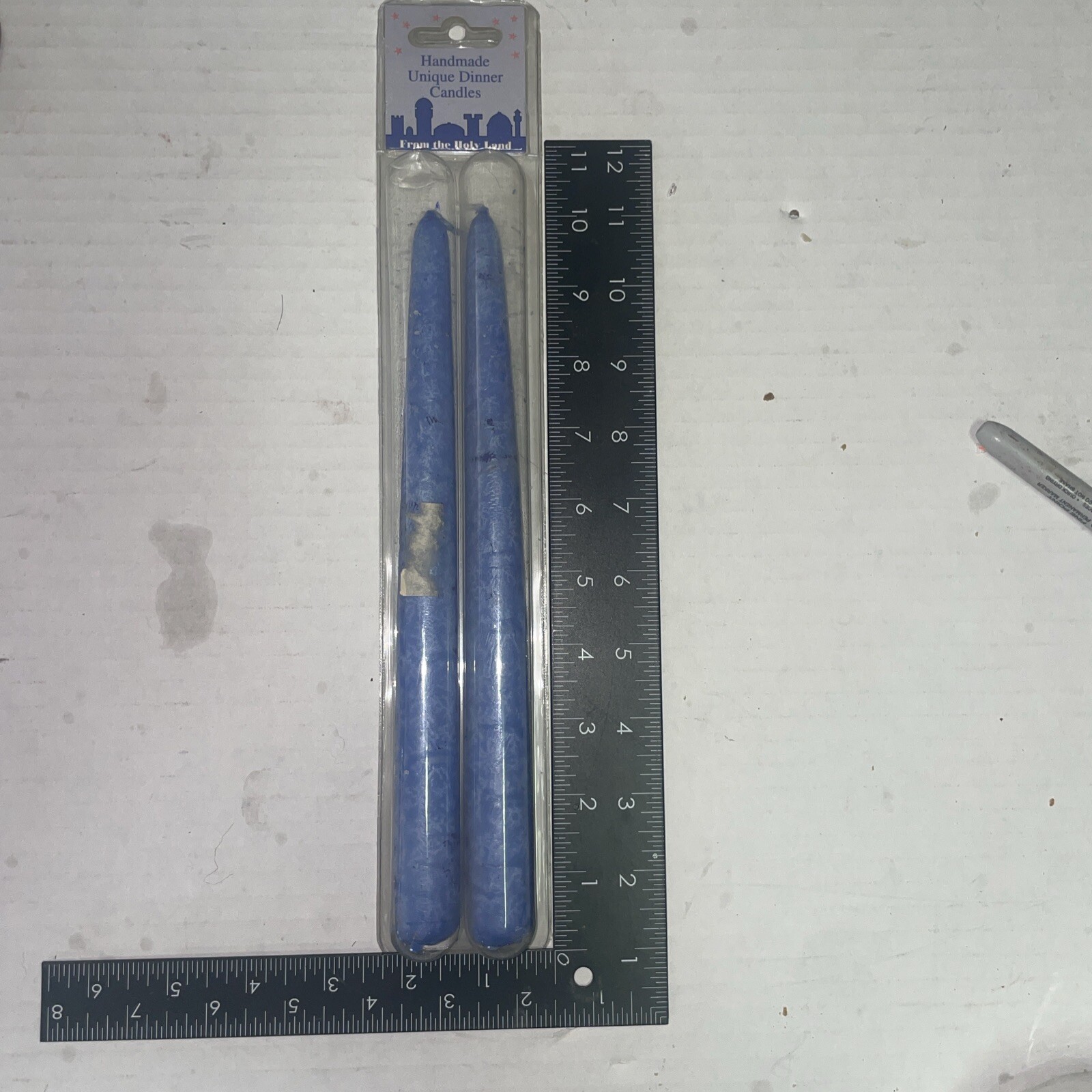 Experience the beauty of Holy Land Israel with these unique, handcrafted candles. Made with high-quality wax and featuring a standard wick-burning design, these taper-shaped candles are the perfect addition to any home. The beautiful blue color and ethnic style make them the perfect decoration for any holiday or occasion. Each box contains two candles that are ten inches in height and one inch in width. These candles are unscented and are made by skilled artisans in Israel. Perfect for adding a touch of elegance to your living space, these handmade candles are a must-have for anyone who appreciates the beauty of unique, high-quality home decor.