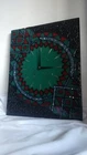 Beautiful clock painting 2 in 1 epoxy resin and plaster, modern art, handmade. Such a picture of a clock will stylize your interior. It will be a beautiful and practical gift for any event or for yourself. If you appreciate art and practicality at the same time, or know to whom to give such a watch, or perhaps you are a collector, do not hesitate. Size: 50*40 cm. Made of gypsum and epoxy resin. Decorated with black and mirror stones. Fiberboard base with subframe. The mechanism is silent.