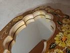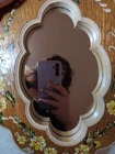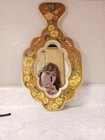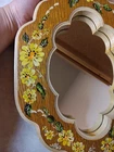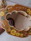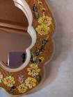 Very Retro Handmirror style inspired Wall Mirror. Handmade with gorgeous 1970s vibes! Beautiful yellow daisies painted onto a stunning wood stained background. Has a sawtooth bracket in the back for hanging. Please review photos fully and ask for additionals if needed! Approx Dimensions: Height: 17 inches Width: 9.5 inches * Please keep in mind that these are secondhand items and may show signs of wear, use, and patina. But, this just adds to the beauty of the pieces! Colors may vary from the website and what you see in person. We do our best to make the colors in the pitcture as true as possible. Thank you for understanding!