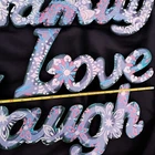 Enhance the ambiance of any room with this stunning set of hand-painted wall art plaques. The abstract, asymmetrical design features a beautiful bohemian pattern with a colorful, high-gloss finish. The plaques measure 9 inches in height and 19 inches in length, making them the perfect size for a medium wall space. The word "Family" measurement 9x19" can bebseen in photos. Words have two hangers a pieces letting them be placed however you like. Does have UV light paint in the detailing, adding a unique touch to the decorative piece. The plaques are wall-mounted and easy to hang, making them a great addition to any home decor.
