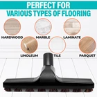 ❗⚠️SIZE INFO - SEE IMAGE 2⚠️❗ The floor attachment for vacuum fits a 1.25" tube diameter and measures 10.2 x 1.6 in, making this wood floor vacuum attachment a nice choice for cleaning most surfaces Durable Build: Crafted from high-quality plastic, this vacuum floor brush attachment offers strength and longevity. The horsehair bristles are soft and resilient, delivering superior cleaning results Compatibility: Designed to fit 1.25-inch wands, this universal vacuum attachments hardfloor brush works with most vacuum cleaners and central systems, ensuring a consistently good cleaning experience Serviced Surfaces: Thoughtfully crafted to safeguard all floor types, from hardwood and laminate to marble, linoleum, tile, and parquet, this universal hardwood floor attachment prevents any potential damage Ease of Use: With a 360-degree rotating vacuum cleaner attachments universal head, you easily reach tight spots & maneuver around obstacles, ensuring thorough cleaning in the most difficult areas Product Description 1 FOR ALL FLOORING 2 UPHOLSTERED FURNITURE 3 FOR HARD-TO-REACH AREAS 4 NOT COMPATIBLE 5 CHECK THE SIZE