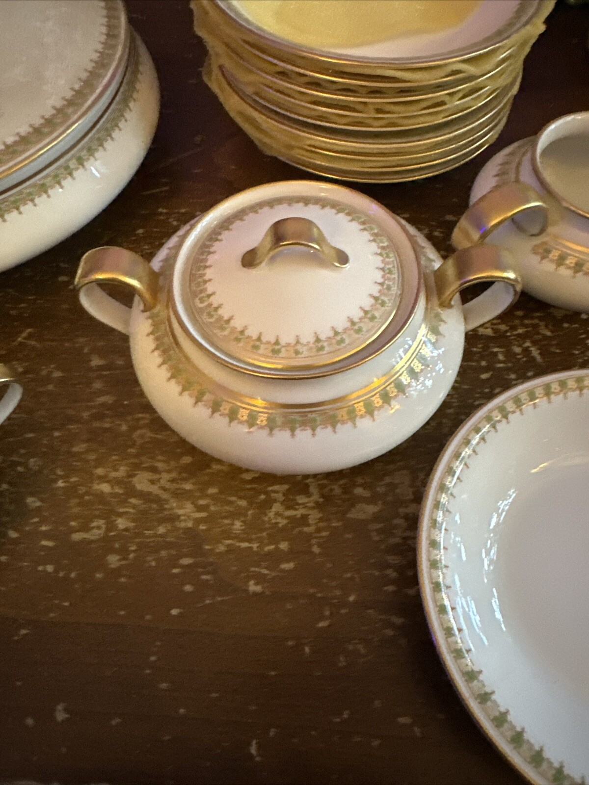 Haviland Limoges France 6 plates,salad,9 bowls,saucers,5 cups,serve,cream sugar. Plus storage containers. One dinner plate chipped 6 plates, 6 salad, 9 bowls, 9 saucers, 5 cups, serving bowl , creamer, sugar