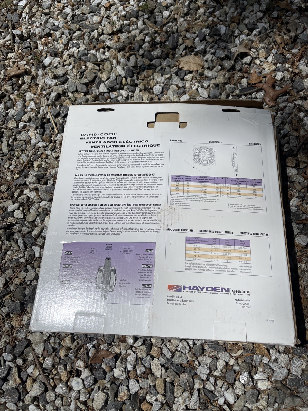 description Radiator Fan Assy Hayden 3690 SELLER & PAYMENT INFORMATION Seller name : ezautopro See our other listings CUSTOMER SUPPORT If you have questions about the product or your order please contact us via eBay Messages for assistance. Thank you. Business Hours: 8 AM to 5 PM EST, Mon to Fri SHIPPING & HANDLING Shipping Service: Please refer to shipping section Shipping Cost: Please refer to shipping section Ship-to location: Please refer to shipping section Order Processing Time: 1 business day Part #: 3690 ABOUT THE PART For additional product information please refer to items specifics or contact us. ABOUT THE SELLER At Dave's Discount Auto Parts we are in the business of customer satisfaction and sell a full-line of car, truck, SUV, and Van Parts including gloves, gauges, AC Compressor, AC Condenser, EGR Valve, Oxygen Sensor, Fuel Pump, Power Window Motor, Engine Computer, Power Window switch, Radiator, Air Filter, Oil Filter, Brake Pads, Brake Rotors, Starter, Alternator, Air Mass Sensor, Shock Absorber, Turn Signal Switch, Ready Strut Assembly, Water Pump, Antennas, Fuel Injector, Window Regulator, CV Axle, Head Gasket Set, Wiper Motor, Ball Joint, Heater Core, Cabin Air Filter, Belts, Ignition Coil, Belt Tensioner, Brake Cable, Distributor, Brake Caliper, Oil Pump, Brake Drum, and Brake Master Cylinder. Dave's Discount Auto Parts has been in the auto parts industry for 45 years and are just now taking our parts expertise and knowledge to the web. We feel our pricing is rock bottom and our products are of excellent quality. We feel this will appeal to everyone from the do-it-yourselfer on up to today's Professional ASE Mechanics, Auto Body, & Transmission Shops. Feel free to ask any questions and we will do our best to find an answer immediately. Also, don't hesitate to call if you need a quicker answer!! **All orders are shipped out ASAP!!** RETURN POLICY Return shipping paid by: Buyer Item must be returned within: 30 Days Refund will be given as: Money Back WARRANTY Warranty Duration: 1 Year Warranty Type: Manufacturer Warranty Please contact the seller for details about their warranty.