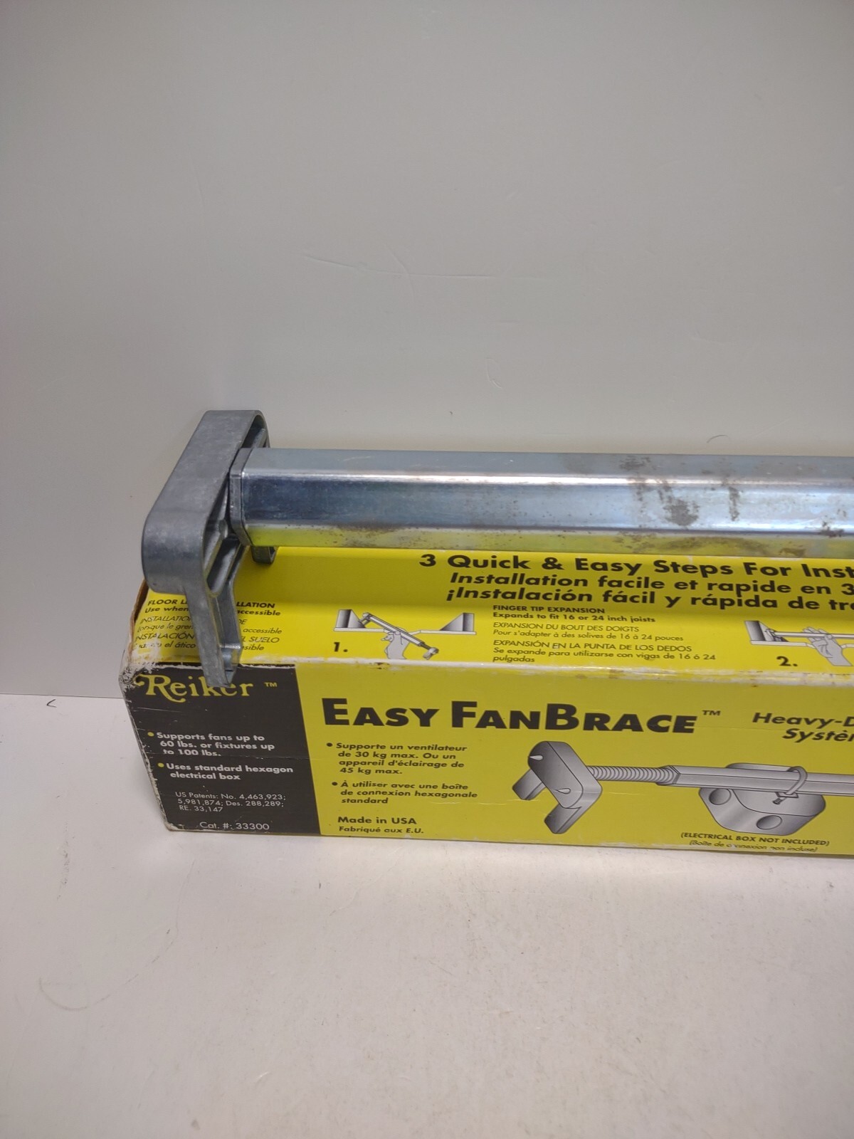 Introducing the Heavy Duty Ceiling Fan Brace by Reiker, model number 33300. This versatile fixture brace is perfect for indoor use and compatible with universal products. Its sleek silver color and durable aluminum material make it a stylish addition to any room. The installation area is not limited, and the connectors used are screws. Please review photos for description. Any questions please ask. Thanks for looking.