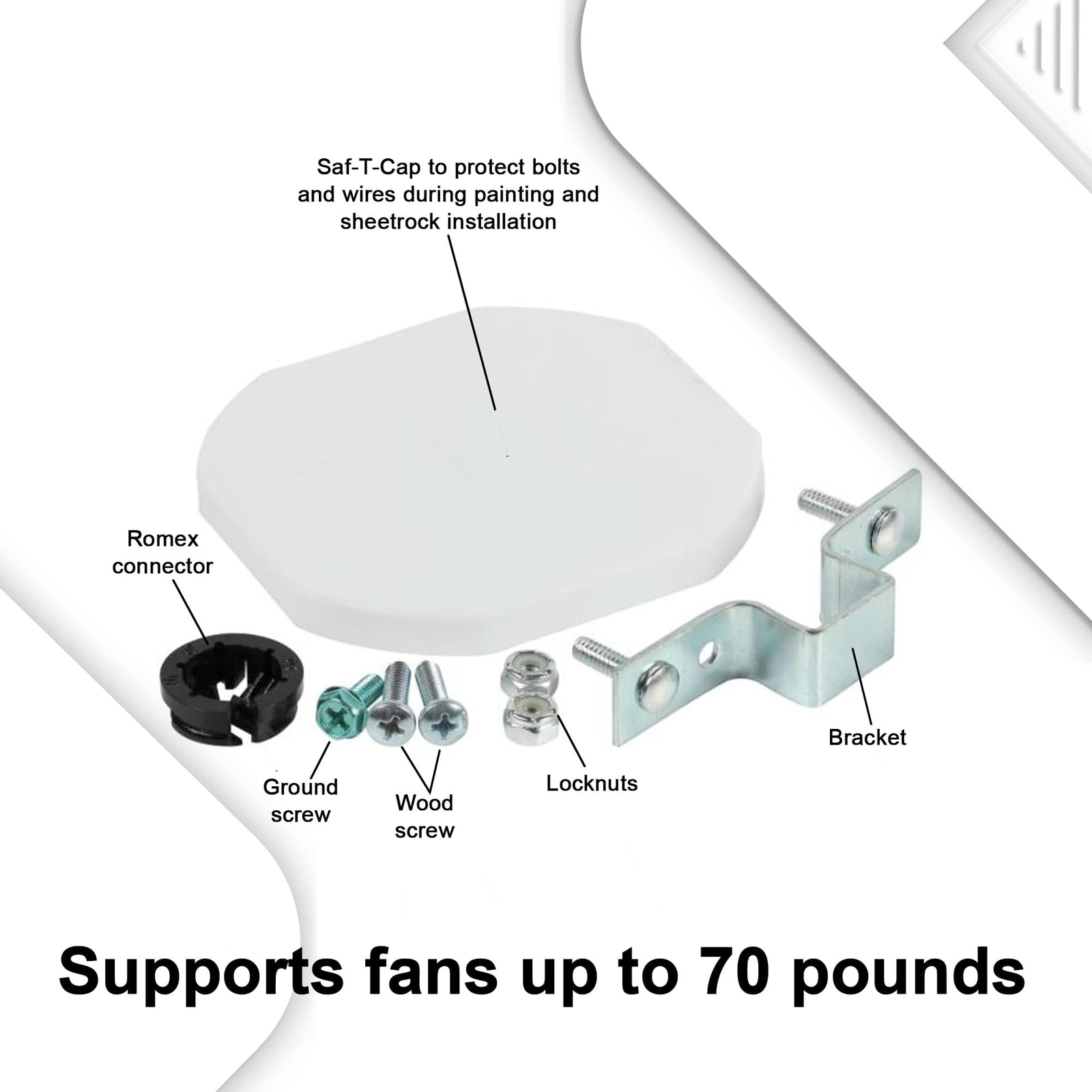 This heavy-duty mounting bracket is a game-changer for ceiling fan installations! The sturdy metal Saf-T-Brace locks securely into joists with three teeth for maximum stability, and the twist-and-lock design makes setup a breeze. Perfect when attic access isn't possible—it holds my fan rock-solid with no wobble. Fast shipping and great quality—highly recommend for any DIYer or pro!