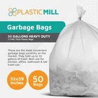 Store New Arrivals Add to Favorite View Feedback Contact Heavy Duty Trash Bags - Clear Garbage Bags - Plastic Trash Bags - Tall Trash Bags, Trash Can Liners - 33-Gallon Large Kitchen Trash Bags, 1.3 Mil, 33"X39" (50-Count) Description Item model number PM-3339-13-C-50 Unit Count 50 Count Capacity 33 Gallons Number of Items 50 Color Clear Scent Unscented Material Plastic Country of Origin USA Material Feature Disposable Recommended Uses For Product Storage,Garbage Bags Is Discontinued By Manufacturer No Item Form Bag Package Dimensions 10.04 x 6.5 x 6.26 inches; 6 Pounds Size & Fit: 33-gallon large trash bags, measuring 33" x 39", perfect for tall kitchen trash cans, ensuring a secure and reliable fit. Thick & Durable: Made from 1.3 mil low-density plastic, these bags are designed to handle heavy loads, resisting punctures and tears. Multi-Purpose: Great for yard waste, lawn debris, and outdoor events, as well as for storage and moving oversized items. Secure Fit: Designed to fit township, municipal, and city outdoor rollaway cans securely, ensuring reliable use without slippage. Conveniently Packed: The bags are packed to ensure easy access and efficient waste management. Product Description About PlasticMill We know that the trash is one of your least favorite things to keep busy with, so we're hard at work making sure that you can spend less time with your garbage and more time with your favorite things. While we’re researching and developing product solutions we hope you enjoy our quality, convenient, user-friendly products like trash bag alternatives. 1 Home and Office Use 2 Commercial Use 3 Outdoor Use PlasticMill Garbage Bag Recycling Garbage Disposal Covering Furniture Home Projects PlasticMill Contractor Bag Yard Clean-up Construction Needs Trash Collection Garbage Bag 1 Garbage Bag 2 Contractor Bag Available in different Gallon Colors Dimensions Thickness GARBAGE BAGS Add to Cart Add to Cart Add to Cart Add to Cart Add to Cart Customer Reviews 4.2 out of 5 stars 53 4.1 out of 5 stars 55 4.4 out of 5 stars 198 4.7 out of 5 stars 78 4.6 out of 5 stars 5 Price $36.07 $ 36 . 07 $47.95 $ 47 . 95 $59.98 $ 59 . 98 $35.27 $ 35 . 27 $57.11 $ 57 . 11 Dimension 24"x23" 24"x31" 67"x79" 61"x 68" 33"x48" Capacity 7-10 Gallon 12-16 Gallon 100 Gallon 95 Gallon 42 Gallon Color Black Clear Black Clear Orange Thickness 1.2 Mil 1 Mil 1.3 Mil 3 Mil 3 Mil Density Low Density Low Density Low Density (Thick Material) Low Density (Thick Material) Low Density ABOUT US We offer the best prices around on high quality products. Our E-store includes media such as books, movies, music and games while offering electronics, toys, sporting apparel, clothing, tools, general home, garden items and more. SHIPPING We are always working hard to ensure your package arrives as soon as possible. Please understand that some factors like weather, high postal traffic, and the performance of shipping companies are outside of our control. We offer free shipping to the lower 48 states and ship within 2 business days of payment, usually sooner. We do not accept P.O. Boxes. Please provide a physical address. For shipping outside of the continental USA, we only use eBay's Global Shipping Program.The item is shipped to KY and then sent to the rest of the world. International customers are responsible for all duties and taxes. Continue to check out in order to calculate costs for shipping the item to your country. Messages regarding eBay's Global Shipping Program MUST be directed at eBay EXCLUSIVELY. RETURNS We offer a 30-Day Return Policy on items which you are not completely satisfied with. You have the option for a full-refund or an exchange of the item. No returns are available on items shipped outside of the USA. PAYMENT We accept PayPal. CONTACT US This page content is yet to come Please ad us to your favorite seller and visit again later Thank You CUSTOMER SATISFACTION We try our very best to make sure every customer is completely satisfied. If there's a problem, message us! We're happy to help. WE ACCEPT Copyright © 2021 AutoDS. | All Rights Reserved