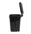 Durable Construction: Made from heavy-duty plastic, this 45-gallon garbage can is built to withstand the rigors of everyday use. Wheeled Design: Equipped with wheels, this trash can is easy to move around, making it convenient for transporting heavy loads. Attached Lid: The attached lid helps contain odors and prevents debris from spilling out, keeping your surroundings clean and tidy. Ample Capacity: With a generous 45-gallon capacity (approximately 170 liters), this garbage can can accommodate large volumes of waste. Versatile Application: Suitable for residential, commercial, or industrial use, this wheeled trash can is a practical solution for waste management.