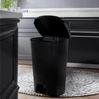 This Hefty Step On trash can in black makes cleanup a breeze with its hands-free operation. Just step on the pedal to dispose and enjoy a silent, soft close. Use with confidence, knowing that it has been engineered to withstand over 22,000 steps. Keep a 13-gallon trash bag secure by utilizing the notches at the top of the bin. This classic and functional waste solution is sure to be a household staple for years to come. On Dec 22, 2024 at 17:41:52 PST, seller added the following information: