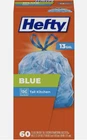 Keep your kitchen clean and your trash out of sight with these Hefty Blue Trash Bags. Designed for a perfect fit in any kitchen space, these bags have a capacity of 30 gallons and come in a convenient 36-count pack. The vibrant blue color adds a touch of brightness to your waste disposal solutions.Crafted from durable plastic, these trash bags are meant to last and are ideal for managing all your kitchen waste. With dimensions designed for practical use, less than 5 inches in length, width, and height, they ensure a snug and secure fit in your trash receptacle. Trust Hefty to provide a reliable, low-maintenance waste management tool for your home.