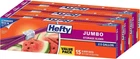 Hefty Slider Jumbo Storage Bags, 2.5 Gallon Size, 15 45 Count, Transparent Product Details Is Discontinued By Manufacturer : No Product Dimensions : 8.25 x 14.88 x 3.75 inches; 2.4 Pounds Item model number : 10013700856157 Manufacturer : Reynolds Consumer Products Country of Origin : USA Brand: Hefty Material: Plastic Capacity: 2.5 Gallons Product Dimensions: 14.88"W x 3.75"H Closure Type: Zipper Number of Items: 3 Special Feature: Designed with patented MaxLock track, an extra-strong seal that clicks closed to let you know it is securely closed, these plastic Hefty Slider bags keep food fresh, are great for travel, and keep home organization and craft projects safe Designed with patented MaxLock track, an extra-strong seal that clicks closed to let you know it is securely closed, these plastic Hefty Slider bags keep food fresh, are great for travel, and keep home organization and craft projects safeDesigned with patented MaxLock track, an extra-strong seal that clicks closed to let you know it is securely closed, these plastic Hefty Slider bags keep food fresh, are great for travel, and keep home organization and craft projects safe See more Shape: Rectangular Color: Transparent Item Weight: 2.4 Pounds JUMBO SIZE FOOD STORAGE BAGS—This pack includes three boxes of fifteen 2.5 gallon Hefty Slider Storage Bags (45 Total) CLICKS CLOSED SO YOU KNOW IT’S CLOSED—Patented MaxLock Track ensures your food is being kept fresh; just listen for the click of the extra-strong seal on these plastic storage bags SUPER EASY TO USE—Our unique design makes it easy to open & close these BPA-free plastic food bags with one simple sliding motion EXPANDABLE STAND-&-FILL BOTTOM—Hefty food storage bags are expandable; stand them up on your counter, table or refrigerator shelf to simplify filling & storing Get a better bang for your buck and toughness you can trust with these Hefty Slider Jumbo Storage Bags. The patented MaxLock track & Clicks-Closed feature lets you know when these BPA-free plastic food bags are securely closed. The stand-and-fill expandable bottom makes it easy to load food, craft supplies or other household items into these plastic storage bags. Large write-on labels let you identify and organize the contents of each of these slider bags in your fridge, freezer or closet. Take these storage bags with you on-the-go; use them as an alternative to packing cubes when traveling, camping or moving to stay organized and keep your clothing protected from spills and moisture. Hefty's premium quality and super strength come with superior savings and a 100..