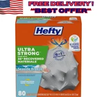 About this item Large Garbage Bags: This package contains 80 Hefty Ultra Strong Tall Kitchen 13 Gallon Trash Bags made with 35% recovered materials including 10% coastal plastic*, Gray, Seaside Breeze Scent Continuous Odor Control: Tall kitchen trash bags with continuous odor control and a Seaside Breeze scent to fight nasty odors and keep your kitchen smelling fresh 6-IN-1 Protection: Flexible scented large trash bags are made from coastal and reclaimed plastic and offer 6 points of protection to keep garbage where it belongs: flex strength, tough drawstring, odor control, and resistance to leaks, punctures, and rips Dependable Drawstring Closure: The durable drawstring on these kitchen garbage bags makes it easy to transport heavy loads, donations, seasonal items and more 100% Satisfaction Guarantee: We want you to be happy with your Hefty trash bags 13 gallon size, if you have any issues, please contact us via the hotline number on the back of the package so we can help