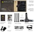 Helios Fully Waterproof 1600 lumen Rechargeable Mountain, Road Bike, MX Headlight, 6400mAh External Battery (NOW 4+ HOURS on Bright Beam) - INCLUDED: Free Diffuser Lens and Free Taillight. External Rechargeable Battery: Incredible 6,400mAh battery encased durable rubber shell. Allows for super bright lighting throughout the longest rides. Extremely Bright: 1600 Lumen CREE T6 LED Technology. This Bike Light with new 6,400mAh battery gets Approximately 4+ Hours on High, 6+ hours on medium, 16+ hours on Low External Rechargeable Battery: Incredible 6,400mAh battery encased durable rubber shell. Allows for super bright lighting throughout the longest rides. Ultimate Safety: More features than any look-alike. Strobe for daytime riding clears cars from your path. Best Bike Light Set: Use for cycling, mountain biking, MX, etc. Helmet mounting accessories included Proudly USA-Based: Unlike our competition, we are proud to be a USA-based company, committed to delivering quality and reliable products while providing excellent support to our customers across the nation.