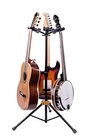 The HERCULES Triple Guitar Stand GS432B PLUS accommodates three instruments and features the foldable Auto Grip System (AGS) yokes, Instant Height Adjustment Clutch, Specially Formulated Foam (SFF) rubber contacts and the adjustable back rests. Three folding built-in Auto Grip Systems safely lock the instrument(s) in place. The AGS yoke is designed to accommodate more guitar neck sizes from 40 mm – 52 mm (1.57” - 2.05”) including classic, acoustic, electric and bass guitars. The attached N.I.N.A. (Narrow Instrument Neck Adjustment, HA301) are specially designed to increase the thickness of AGS arms to accommodate narrow neck instruments from min. 28 mm (1.10”) like banjos and mandolins. The Instant Height Adjustment Clutch with Locking Pin adjusts stand height quickly, easily and securely. The Folding Back Rests with multi-angle position adjustment support the instrument securely and fold up securely for travel. Height: 905 mm - 1130 mm (35.6” - 44.5”)
