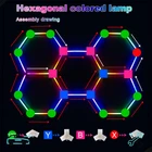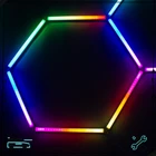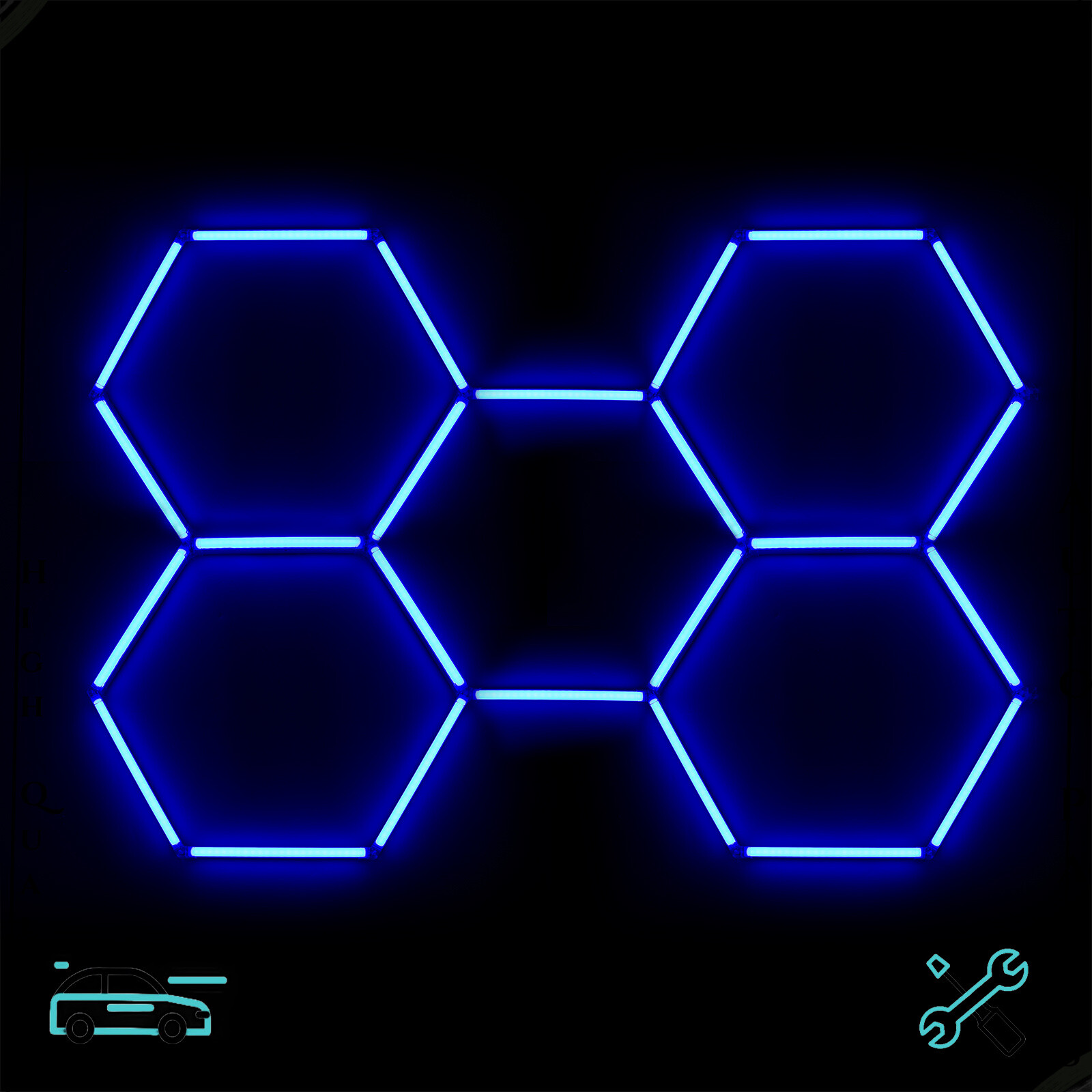 Description: LED hexagonal honeycomb light is easy to install, just insert both ends; DIY assembly method, can be assembled into various hexagons or rectangles according to your own preferences; It is usually used for lighting in garages, car washes, car repair shops, exhibition halls, shopping malls and other places to enhance the style and attract people. Industrial sense of fashion. This is a hexagon patterned garage light LED workshop lighting system can be mounted on the wall and ceiling with screws and zippers. The light spread from the pattern gives you a comfortable visual experience a pleasant viewing experience and illuminates an entire garage bay at the same time. This takes the idea of illuminating your space to a whole new level. Specification: Voltage: 110V-220V(Input) Power: 43W Lumen: 15950LM Color Temperature:6500K Material: Aluminum + PC Cover Product Size: 96.2 x 67.2 x 0.78 inches(L x W x H) Single Tube length: 460mm Warranty: 2 Years The remote is only red, green and blue. Product Included: The Power Cable: 1-end RGB Remote Controller: 1 piece 5 grids LED Hexagon Lights RGB Attention: Due to the different methods of measurement, the size has a slight error LED garage ceiling lights features: 1.The lamp tube is wider, 20mm, the light emitting surface is larger and brighter, wide range of lighting. 2. super bright: 110-120lm /w. High quality LED chips, much brighter. 3. high safety factor: built-in plug, it is difficult for fingers to touch the plug. 4. the led store lights installation is firmer than other stores and not easy to loosen. 5. DIY design, just provide us with the size and shape you want, and we will provide a design solution.
