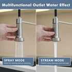 Kitchen Faucet with Pull Down Sprayer High Arc Single Handle Spring Kitchen Sink Faucet Brushed Nickel Modern Stainless Steel Kitchen Faucets High Quality Design:The brushed nickel sink faucet has exquisite special solid brass body design ,rust-resistant finishing. Two Function Sprayer: Kitchen sink faucets setting (STREAM, SPRAY), stream for filling water, spray for rinsing, providing stable water pressure, makes cleanup now on it will create a different kitchen cleaning experience. Flexible to Operate: High arc 360 degree swivel spout for full sink access, pull down sprayer to avoid splashing. It suitable both single bowl and double bowl kitchen sink. Also single handle design make its easy control the hot&cold water and flow volume. Easy to Clean: Brushed nickel finish & surface transition design prevent dirty / water stain from sticking to faucet surface, only cleaning faucet by cloth is enough in Daily Use. What will you get: we have the best team online at any time, and the professional after-sales team can solve any problems about the faucet for you.