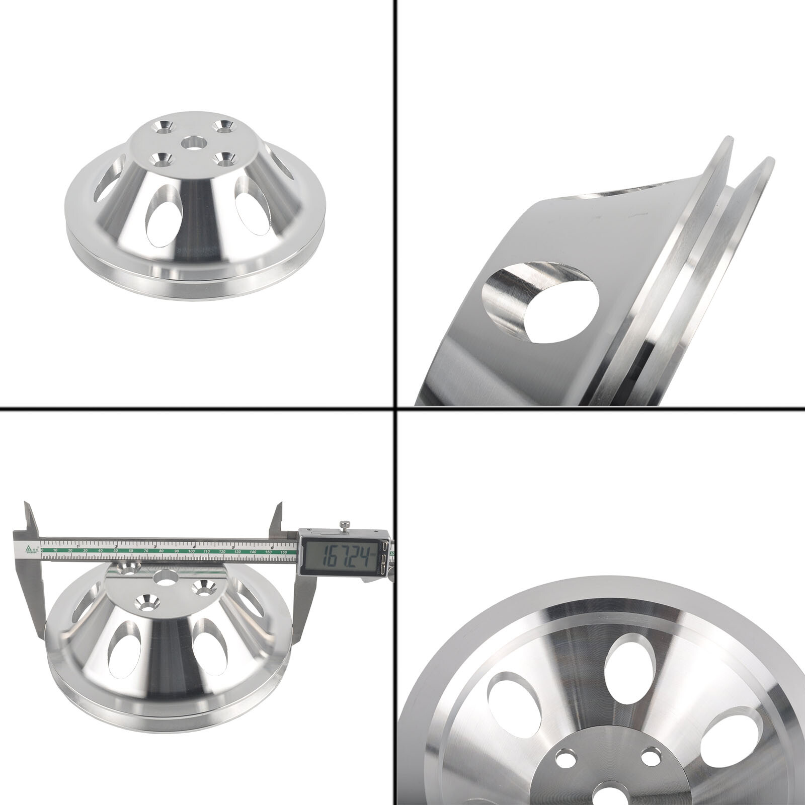 Satin Water Pump LWP Pulley Triple Groove Crank Pulley Kit for Chevy 350 SB